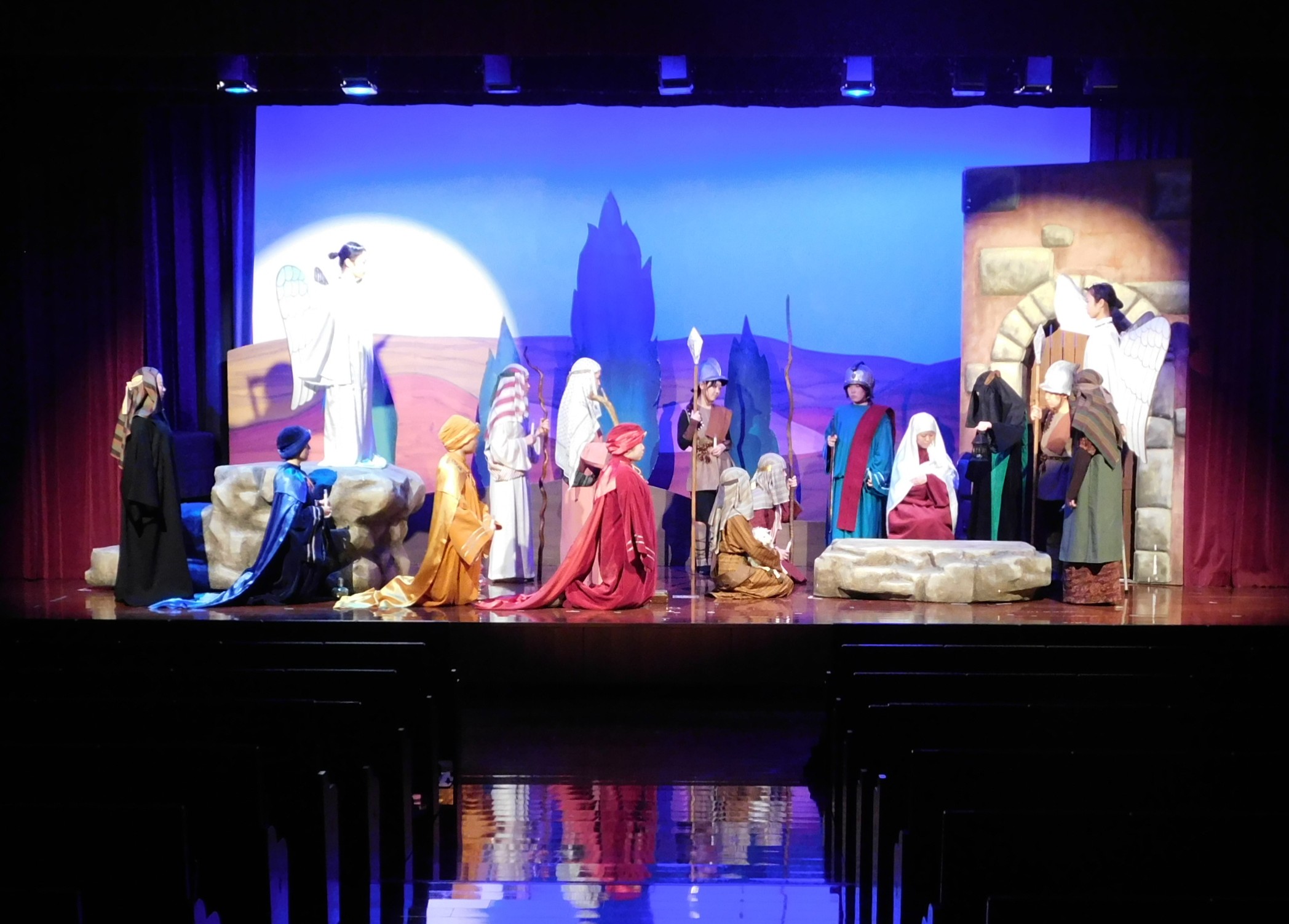 第1部の礼拝に引き続いて、生徒の奉仕による「ページェント」(降誕劇)が行われ、「ハレルヤ」を賛美しました。