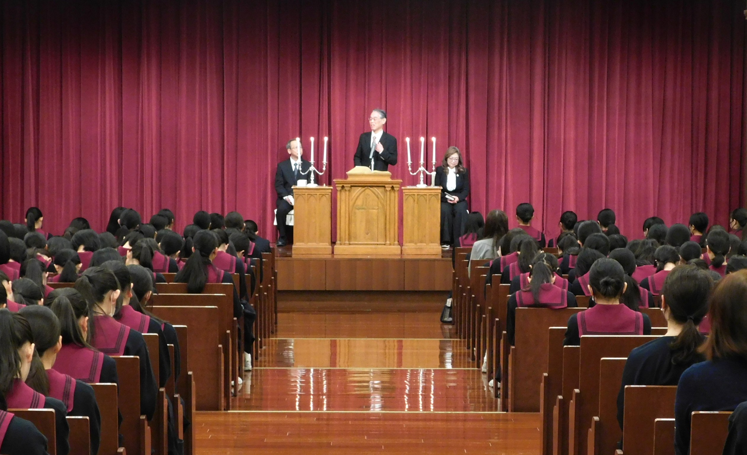 本日、日本基督教団 小田原十字町教会牧師 馬場康夫先生をお迎えして、午前は全校クリスマス礼拝(全校生徒対象)、午後は学校クリスマス礼拝(学校関係者・旧教職員・卒業生・保護者対象)をまもりました。