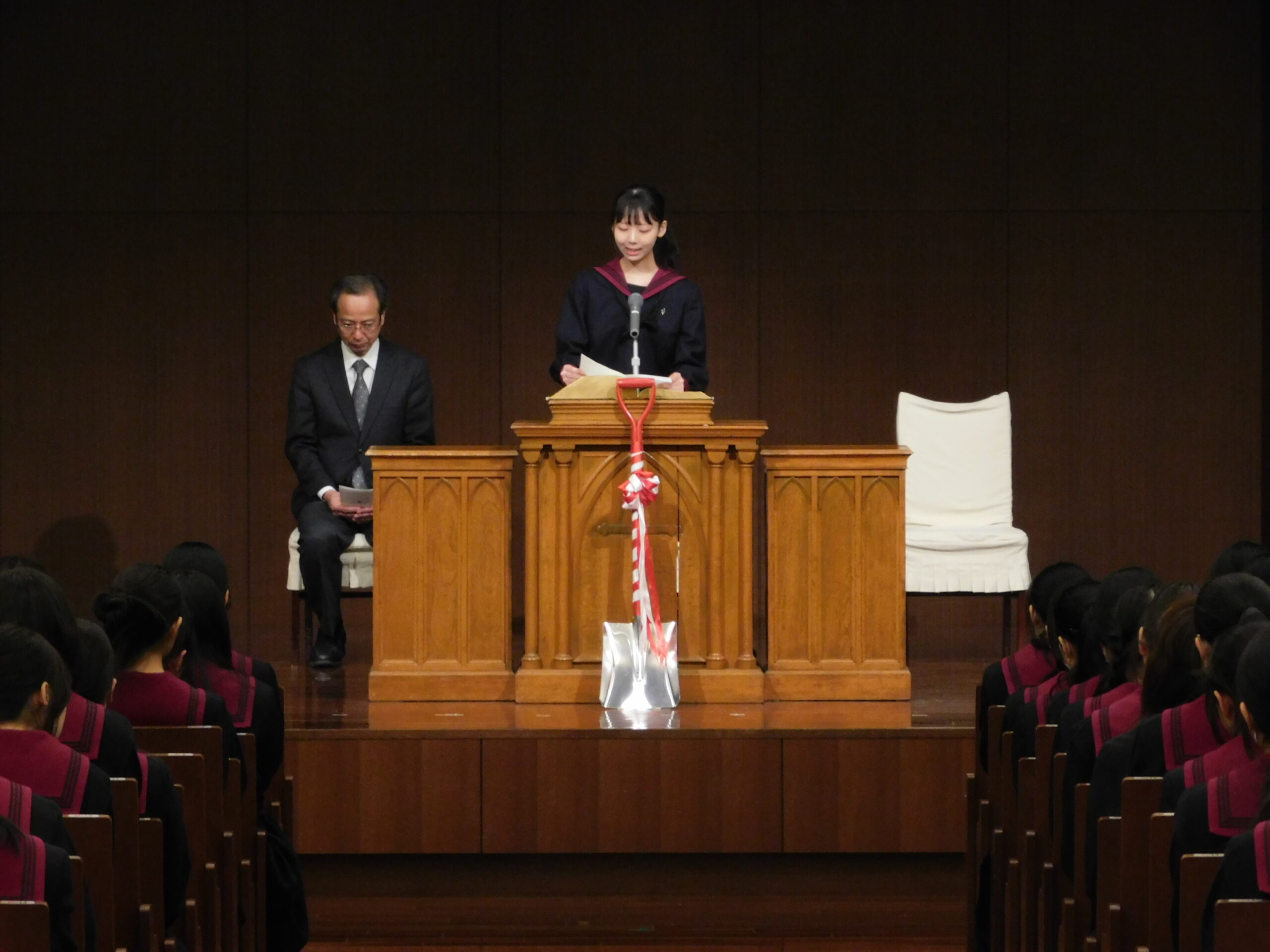 本日、東洋英和女学院 宗教部長 野田美由紀先生をお迎えして、高等学校3年生の卒業記念礼拝が行われました。