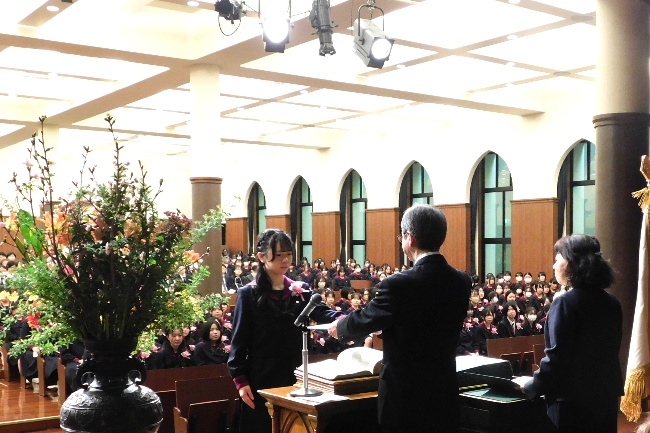 在校生、卒業生保護者、教職員が見守る中、一人ひとり校長先生から卒業証書を受け取り、厳かな卒業式を行うことができました。